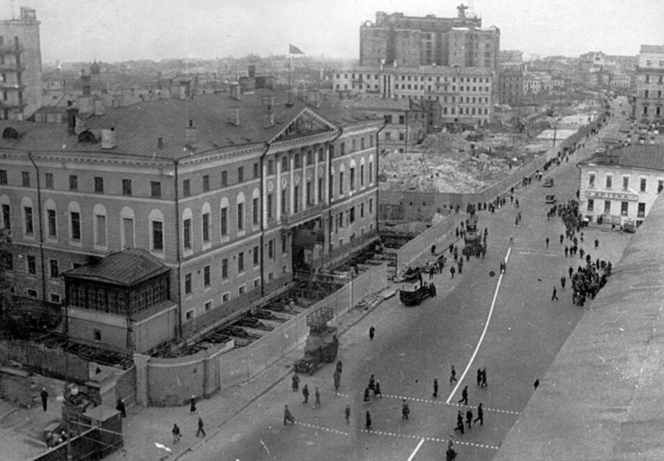 И все же эти случаи долгое время были единичными. Массовое «переселение» домов началось в 1935 году, когда утвердили Генеральный план реконструкции Москвы. Документ предполагал расширение центральных улиц города, для чего требовалось разрушить многие постройки, в том числе памятники архитектуры. Поскольку делать этого никто не желал, советские руководители сформировали специальную организацию, которая занялась передвижением зданий. В нее в основном входили специалисты-метростроевцы. Ради пробы они переместили шесть небольших зданий, а потом взялись за масштабные объекты. Руководить работой назначили инженера Эммануила Генделя, который незадолго до этого передвинул 320-тонную фидерную подстанцию: она мешала прокладке трамвайных путей.