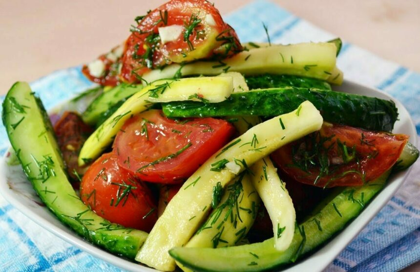 Готовим малосольный салат из огурцов, кабачков и помидоров в пакете быстро