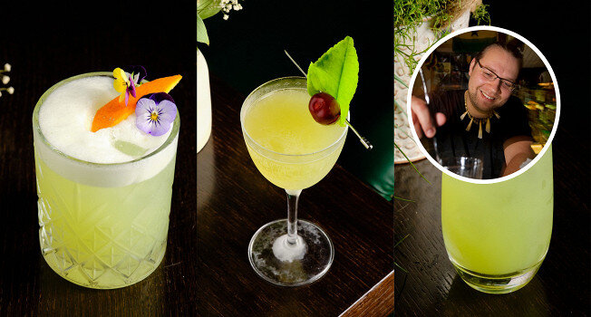С молоденькими стручками он приготовил три алкогольных коктейля и один бодрый лимонад и представил их за стойкой бара Perepel, который переосмысливает мировые коктейльные тренды в русле русской питейной традиции.