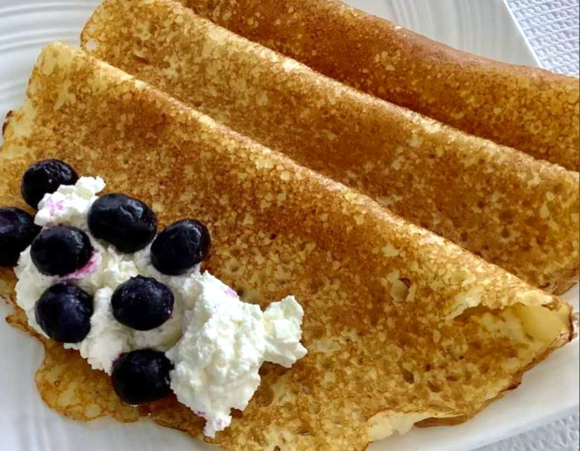 Творог взбейте блендером или протрите через сито, добавьте яйцо, сахар, соль, молоко и еще раз взбейте.