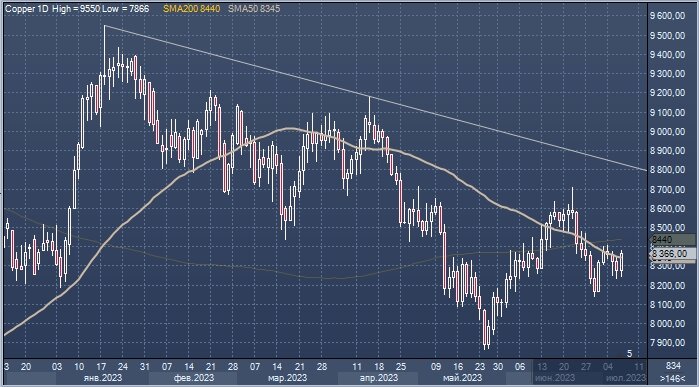 Премьер-министр Ли обещает «не жалеть времени’ для укрепления экономики Китая. Меж тем данные по занятости в несельскохозяйственном секторе США показывают, что рынок труда теряет обороты. Цена меди на LME интервалами 1 день Медь подорожала, прервав трехдневный спад, поскольку трейдеры все более уверенны в перспективе стимулирования экономики Китая и смягчения ситуации на рынке труда США. В последние месяцы на промышленные металлы, такие как медь и алюминий, оказалось давление из-за медленного восстановления Китая после пандемии. На этой неделе появились новые признаки того, что долговой кризис в сфере недвижимости в стране не закончился, в то время как данные показали, что в июне в сфере услуг произошло смягчение. Тем не менее медь завершит неделю практически без изменений в надежде на то, что Пекин в конечном итоге окажет экономическую поддержку. Власти сталкиваются с давлением, требующим подкрепить обнадеживающую риторику в отношении экономики существенными действиями после того, как