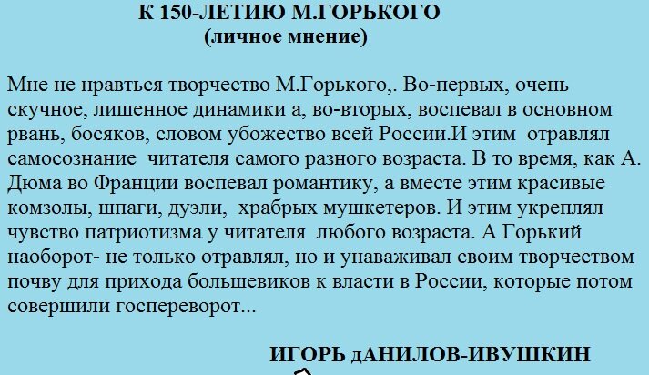 К 150-ЛЕТИЮ М.ГОРЬКОГО