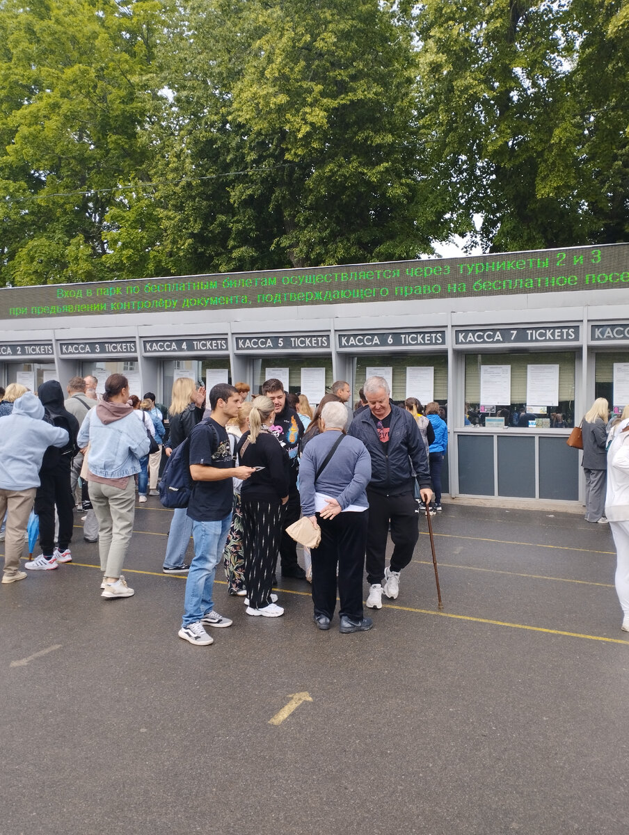7.07.2023 Здравствуйте. Про Петергоф уже столько написано статей. Столько дано рекомендаций. Столько выложено фото.... Но моя сестра ни разу не была в Петергофе. Поэтому поехали туда. Петергоф красив в первый раз. Ну, во второй. Потом начинаешь уставать от толпы народа, которая бегает вокруг. С утра был дождь. Поэтому мы подъехали где-то в районе 14.00. Нам это было даже на руку. Верхний парк все ещё на реставрации! Народу в кассах было не много Цены на билеты: Сам Петергоф прекрасен, как всегда По фоткались у Большого каскада И пошли кушать: ведь дома никто не ел сосиски, не пил кофе! Чуть прифигела от цен Взяли Мега френч с колой. Ну, и пошли на шутихи (ибо не фиг! зачем только ехать в Петергоф если не обливаться в шутихах) Это фонтан с деревом и тюльпанами. Дети спасались надевая дождевики. Побегал под водой, пошли на другой. Тут мы разделились: мама с сестрой пошли дальше гулять по парку, я сидеть с вещами, а сына беситься на шутихе Когда сын был маленьким (его первый пр