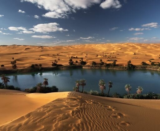 Ливийская пустыня — это не бескрайний песчаный пейзаж. Здесь встречаются и скалистые образования и чахлая жесткая растителыность. Редкие колодцы, попадающиеся на бедуинских тропах, представляют собой просто ямы в каменистой почве. И тем более сказочным и райским местом может показаться усталому путнику бушующий жизнью, зеленью и свежестью оазис, словно мираж возникающий посреди бескрайней безводной пустыни.