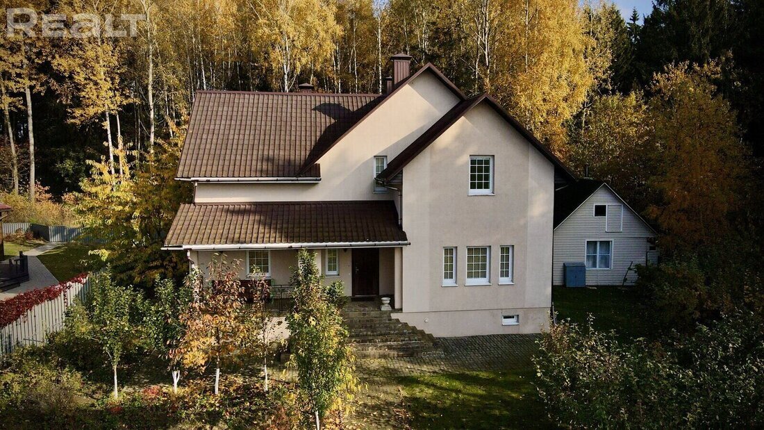По соседству с деревней Лапоровичи, что находится на берегу Минского моря, есть СТ "Ученый". Там у самого леса продается двухэтажный коттедж со всеми коммуникациями. Там сделан хороший ремонт, имеется мебель, техника и даже печь с лежанкой. Как там все устроено внутри и сколько просят за такую жизнь за городом с участком в 15 соток? В СТ "Ученый" в 14 км от МКАД продается двухэтажный кирпичный коттедж 2011 года постройки. В доме есть также цокольный этаж. Крыша накрыта ондулином. Общая площадь коттеджа - 218 м². В коттедже сделан ремонт в классическом стиле. На полу в жилых комнатах лежит паркет, в кухне и санузлах - плитка. Там установлен теплый пол с водяным подогревом. На первом этаже находятся гостиная с камином, кухня и две изолированные комнаты. Также на этом уровне есть кухня со всей необходимой современной техникой: газовой варочной поверхностью, духовым шкафом и вытяжкой. В спальне на первом этаже оборудована печь с лежанкой. Имеется санузел с душевой кабиной, хозяйственные по
