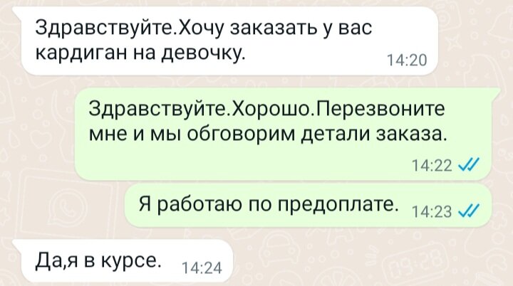 Клиентка отменила заказ на вязаный кардиган обозвав меня наглой