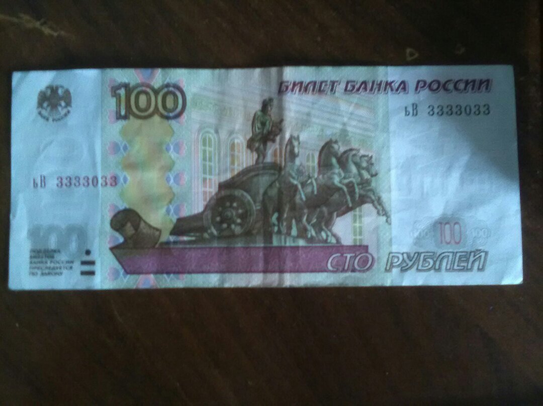 Вчера я зашёл в кафе поесть, и там на сдачу мне дали купюру 100 рублей с красивым номером. В этом номере шесть троек.
