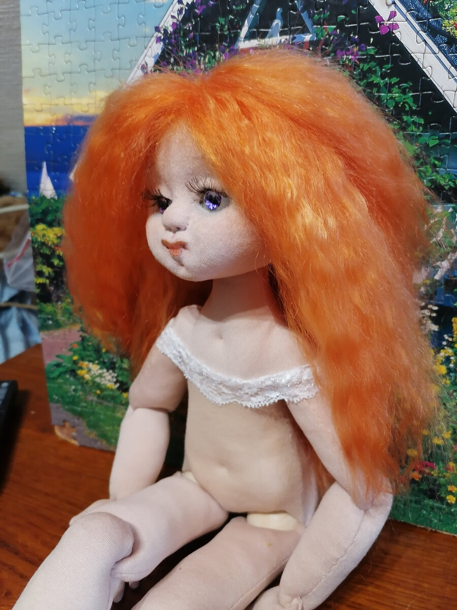 Здравствуйте! Итак, предлагаю вашему вниманию мою куколку Поленьку. Я писала, что много головушек понаделала прежде, чем получилась такая куколка. Работала я с ней долго, не одну неделю, но думаю результат стоит этого. Все фото из моего личного архива Вот такая девочка получилась! Одежда у меня многослойная Долго подбирала из какой ткани сшить и решила, что буду шить из нескольких тканей Это нижнее платьице Дальше платьице с розочками И верхнее из ромашек А ботиночки белые И ещё немного фото Будет ещё видео, чтобы можно было рассмотреть куколку (фото плохо передаёт детали)