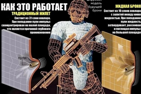 По словам студента, соответствующая жидкость уже есть, точнее, это вязкое вещество, как я понимаю, типа геля, она соответствует выполнению задач. Но пока слишком дорогая, что неприемлемо для бронежилета.