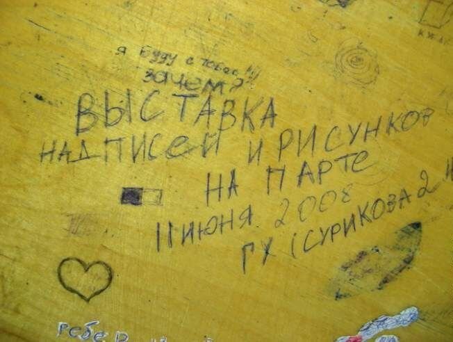 "Здесь было зверски убито время". Безумные и смешные рисунки и надписи на партах от школьников и студентов