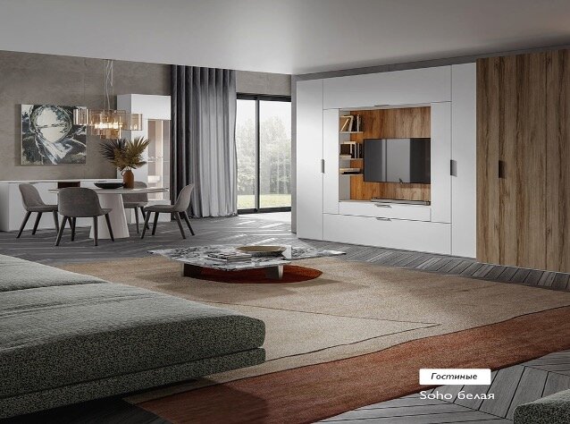 Большая семья = много вещей, а не использовать для хранения гостиную довольно расточительно. Здесь можно оборудовать «скрытые» места: например, большой диван с внутренним ящиком, композицию для телевизора со шкафами, комод или антресоли для обеденной зоны. Всё это есть в ассортименте «Шатуры».