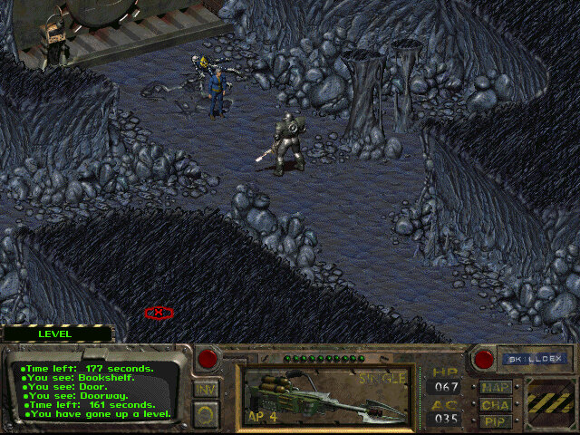 накопленного опыта, родился некий "джентельменский набор сценариста", единый для литературы и кино, и в том же виде он используется в компьютерных играх. Резкий поворот сюжета рекомендуется делать в середине повествования, безжалостно подвергая главного героя серьезным испытаниям. Если уж не убить его мнимой смертью, то по крайней мере устроить такие проблемы, когда все надо начинать с нуля. Сценарий Fallout 1 построен строго по классической схеме: путь начинается у дверей в убежище, и заканчивается там же. Присутствует так же и резкий поворот в середине, но принять его способен далеко не каждый геймер. Речь идет о встрече с мутантом Гарри у водяного насоса в Некрополисе. Если до встречи не трогать других мутантов, диалог включается принудительно, в результате герой попадает на военную базу Марипоза, где подвергается допросу с пристрастием, с целью выяснить мест