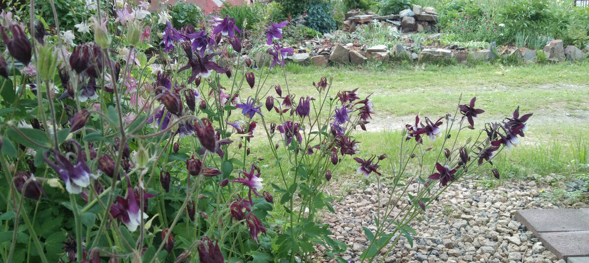 Всем привет! Сегодня статья у меня о маленьких звездочках в моём саду! Хотя звёзды у нас вроде белые, но именно темные цветочки Аквилегии напоминают мне звёзды😊 Появилась Аквилегия у меня давно и именно тёмная, рассадила я её в цветах побольше. Где то сама сеется, лишнее убираю, а что то пересаживаю. Но пересадку переносит тяжело, но всё же приживается на новом месте. После того как цветы отцветут удаляю цветоносы с семенами, иначе будет море цветов на следующий год. Семена мелкие и их очень много. Листва интересная, очень декоративно смотрится. Развела в саду ещё и нежно розовых оттенков полумахровые Аквилегий. Вот эта розовая Аквилегия у меня тоже уже давно. На днях там борьба была, два соседских кота у меня в цветах территорию делили и завалили весь цветок😭😟 И напоследок фотография моей так сказать новинки. Незнаю как такая красота у меня появилась. Цвет отличается и сам цветок другой. Вылезла под ранеткой, у самого ствола. Я даже её не сразу заметила, хорошо что как лишнюю не