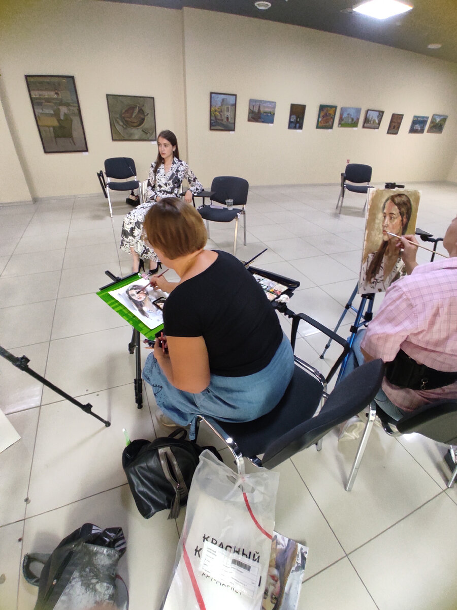 Вчера была интересная модель - театральная актриса, рисовали длительную постановку три с половиной часа. Успели пообщаться что сейчас идет в театре какие фильмы сейчас снимают. Рисовать портрет и не знать человека кто он по профессии, чем занимается как минимум не осмотрительно, ведь что отличается от рисования по фото от рисовании с натуры это то, что я пытаюсь изобразить характер модели, хотя внешнее сходство тоже играет первостепенную роль, я уже не говорю про то что по фото мы видим плоскую картинку и художник автоматически бывает срисовывает "пятнашки" не строя череп, мышцы лица и пр. Вчера отлично порисовали модель, пришло не так много художников. По правилам нашего Союза художников мы даем выбрать один портрет на выбор, а дальше если художники захотят, они могут дополнительно подарить еще портреты, вот так вчера Анжелики мы подарили 4 портрета. Кто желает научиться рисовать портреты или попрактивать портретную практику приходите, участие у нас бесплатное, мы находимся в 20 мет