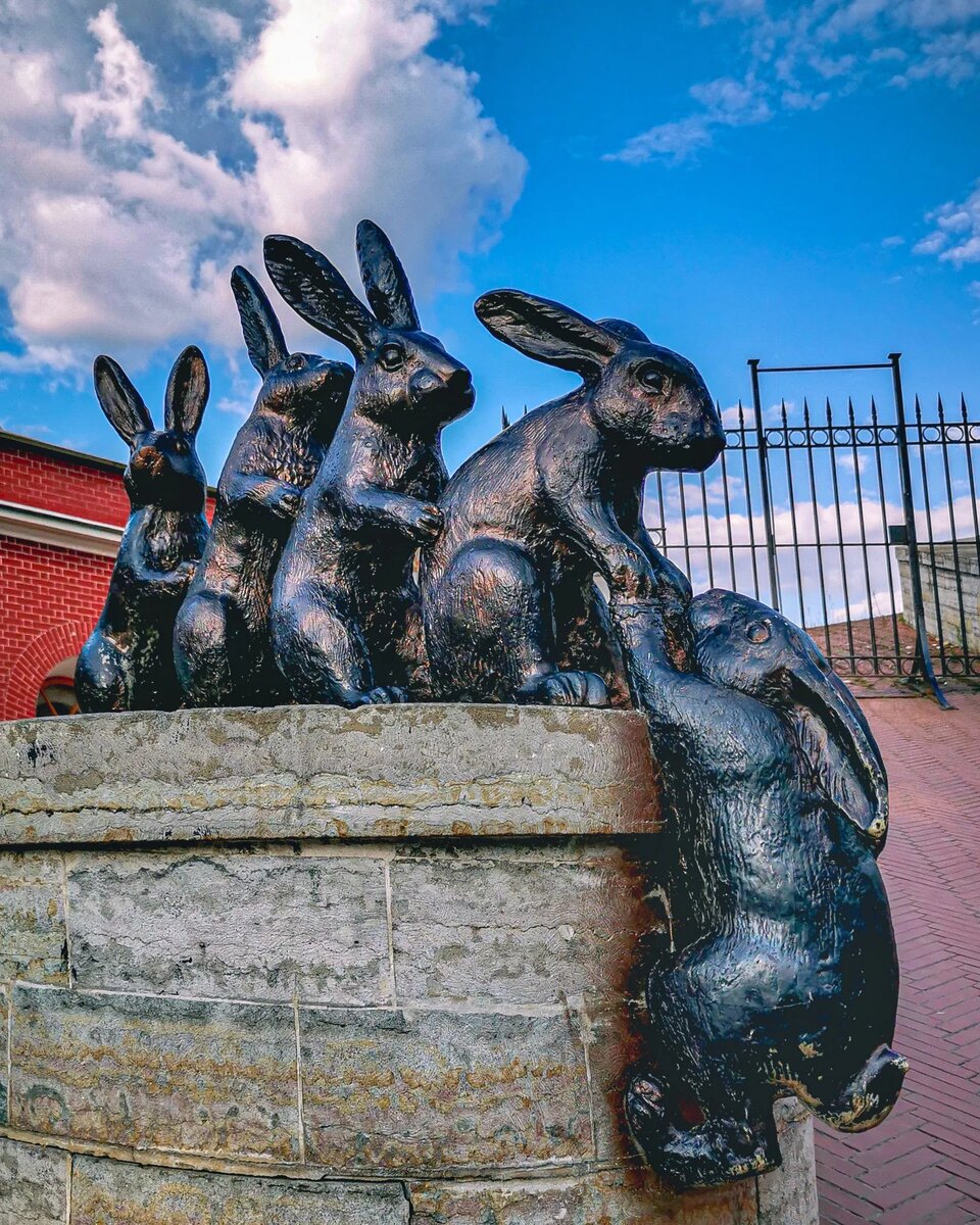 Ели вы как и я не знали, что кроме всем известного зайца рядом с Иоанновским мостом, внутри есть еще целая компания, то давайте разбираться вместе, кто эти ребята. И почему остров называют Заячий. 🐰 Итак, первого кого мы видим, это зайчик, одиноко стоящий рядом с переходом в Петропавловскую крепость. Стоит он там уже целых 20 лет, с 300 летия Санкт-Петербурга. Есть про него легенда, что этот самый зайчик скакнул на сапог Петра I, когда тот сошел на берег с лодки. Он был не один, на острове их было много, поэтому и назвали его Заячьим. Есть и вторая версия, но там он тоже скачет, в ту же сторону, но повыше. 🐰🐰 Кстати у зайца и имя есть – Арсений. И есть одна милая традиция, кидать к нему монетки, мол зависнет, значит желание сбудется. Уж не знаю сколько тонн монеток в год туда кидают, но процесс постоянный. Внутри крепости живут еще зайцы, разных размеров и разновидностей. О каждом рассказать особенно не чего, поэтому просто запоминайте и когда там будете, передавайте привет от ме