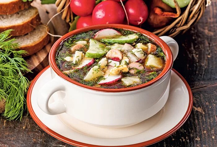 Лето — время холодных супчиков: и голод, и жажду утолишь. А еще не вспотеешь, пока ложкой работаешь! В истории происхождения окрошки — летнего супа на квасе, разбиралась корреспондент агентства «Минск-Новости». Впервые окрошку я попробовала лет в 9, когда гостила у папиной московской тетушки. Лето выдалось жарким, поэтому тетя на обед и приготовила это «странное» блюдо. Помню, как меня удивил суп из кваса, в котором плавали кусочки ветчины и сосисок. Дома мама готовила обычно холодник из молодой свеклы или щавеля. Название русского холодного супа произошло от глагола «крошить», то есть «измельчать, мелко нарезать». Некоторые историки считают, что прародителем окрошки стала ботвинья — холодное кушанье из кваса с луком, рыбой и отварной ботвой свеклы. Этот старинный суп упоминается еще в «Домострое» — книге XVI века. Есть также версия, что блюдо придумали волжские бурлаки. За работу они получали квас и буквально «окаменевшую» воблу, которую можно было отведать, лишь предварительно размоч