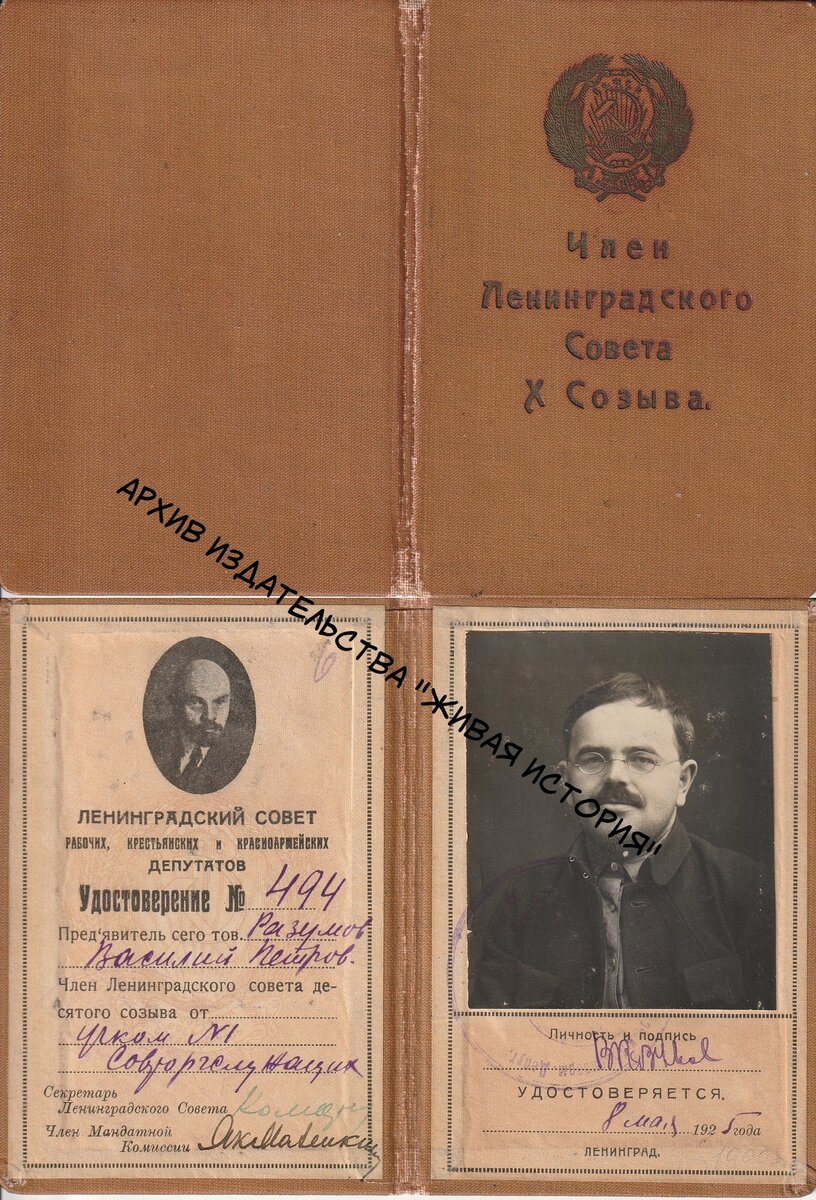 Удостоверения (мандаты) депутатов - одна из интереснейших тем коллекционирования. Любопытное полиграфическое исполнение и дух эпохи. Все это вызывает у людей, склонных к собирательству, желание сформировать хотя бы скромную коллекцию таких документов. В историческом архиве издательства "Живая история", которое возглавляет автор этих строк, есть несколько старинных депутатских удостоверений-мандатов. То, что показано выше, относится к Ленинградскому совету рабочих крестьянских и красноармейских депутатов X созыва. Удостоверение принадлежало депутату Василию Петровичу Разумову. Его фотопортрет, кстати, сохранился в Центральном архиве кинофотофонодокументов. Там В.П. Разумов представлен как рабочий корреспондент газеты "Правда". https://spbarchives.ru/infres/-/archive/cgakffd/photo/ar61524?ysclid=ljucl67mtm943225448 Понравилось заметка? Лайкните и подпишитесь. На нашем канале будет всякое-разное-интересное.