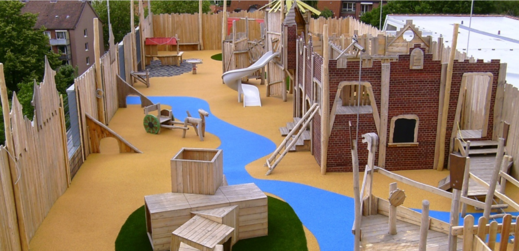 Чтобы дать детям возможность погрузиться в приключение, в гавани, помимо прочего, есть игровой корабль. Здесь установлены различные подиумы для скалолазания, спиральная горка и элементы балансировки.Чтобы дать возможность даже самым маленьким принять активное участие, есть отдельные зоны для малышей, которые расположены по всей территории. Например, лабиринт для ползания, состоящий из грузовых ящиков, качающийся морской змей на пружинах, рыночный киоск и конный транспортер, которые теперь также входят в стандартный ассортимент компании Klimper Paradise GmbH.