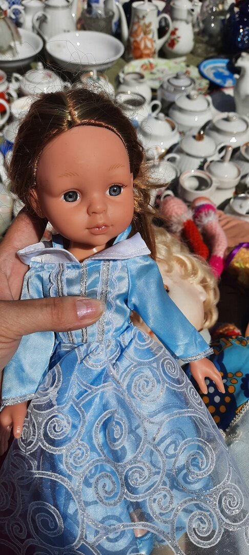 Здравствуйте. Сегодня будет небольшой обзор на еще одну аналоговую куколку. К слову, я даже подумывала заказать такую на Али. Стоили они тогда порядка тысячи рублей, но я твердо решила Паолок не плодить. Да, моя вчерашняя покупка - подделочка под Паолку. Как она оказалась на Уделке, да еще и в состоянии, близком к новому, совершенно не понятно. Чуть-чуть потрепанные волосики, собранные в хвостик. Но даже резиночка подобрана в цвет. Туфельки сохранились. Да и сама она чистенькая, в родном платье, которое даже испачкаться или выгореть, от лежания на солнце с другими куклами, не успело. Часто натыкаюсь в интернете на рассказы мам, которые дочке "для пробы" покупают неоригинальных Паолок. Если девочка куколку бережет, любит и заботится, то уже тогда покупают оригинальных, подороже. Скорее всего, эта куколка и была таким вот "пробничком". Мое сердечко дрогнуло. Ну как эту малышню можно обратно положить в кучу не очень чистых кукол лежать под солнцем, выгорать? В общем, 200 рублей и девочк