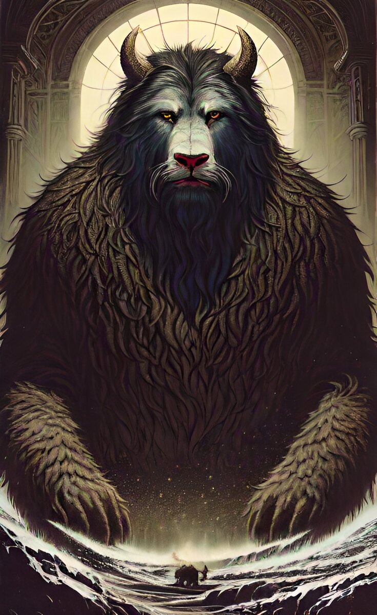 Разбрелись охотники, как положено, на расстояние свиста. Вскоре молодой Щегол обнаружил зверюгу. Свистнул звонко и переливчато. Все охотники к нему тотчас сбежались. Смотрят: стоит красавец! Большой волосатый зверь. Спина словно гора лохматая, ноги – дерева мшистые, клыки аки лунные загогулины. А глаза добрые, добрые! Беззащитные.