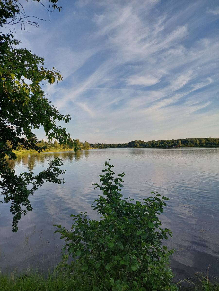 Добрый день, дорогие друзья! Сегодня предлагаю вам полюбоваться на Озеро. Озеро на фото находится в Подмосковном небольшом посёлке Запрудня. Это моя малая Родина, где я жила до переезда в Москву. Озеро не природного происхождения. На этом месте было множество прудов, что и дало название поселку Запрудня. В 50х годах прошлого века эти пруды были объединены в одно большое озеро, которое не имеет названия. На берегу озера в мое детство был песочный пляж, лодочная станция, можно было взять на прокат лодку или катамаран и поплавать по озеру. Вдоль одного берега была тополиная аллея. Очень здорово было там гулять, особенно летом, когда жарко, тополя давали тень и прохладу. На сегодняшний день половину тополей, к сожалению, спилили. Оставили ряд только вдоль озера. Очень долгое время берег озера был не ухожен, песок зарос травой. Лодочную станцию убрали. Но несколько лет назад на берегу озера был создан парк "Солнечный берег". Озеро почистили, привезли песок, сделали пляж, дорожки, спортив