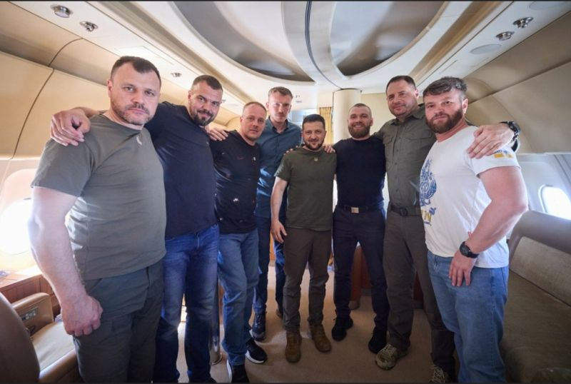 Из новостей: командиры Тех-Кого-Нельзя-Называть, взятые в плен в прошлом году на «Азовстали», вернулись из Турции на Украину. В турецком аэропорту их встретил и приветствовал Владимир Зеленский, затем вместе с ними поднялся на борт самолёта. Среди вернувшихся известные командиры Денис Прокопенко, Святослав Паламар (Калина), Сергей Волынский (Волына), Олег Хоменко и Денис Шлега. Все они и их однополчане были обменяны в прошлом году на российских военных и украинского политика Медведчука. При этом в качестве условия называлось, что они пробудут в Турции «до конца войны».