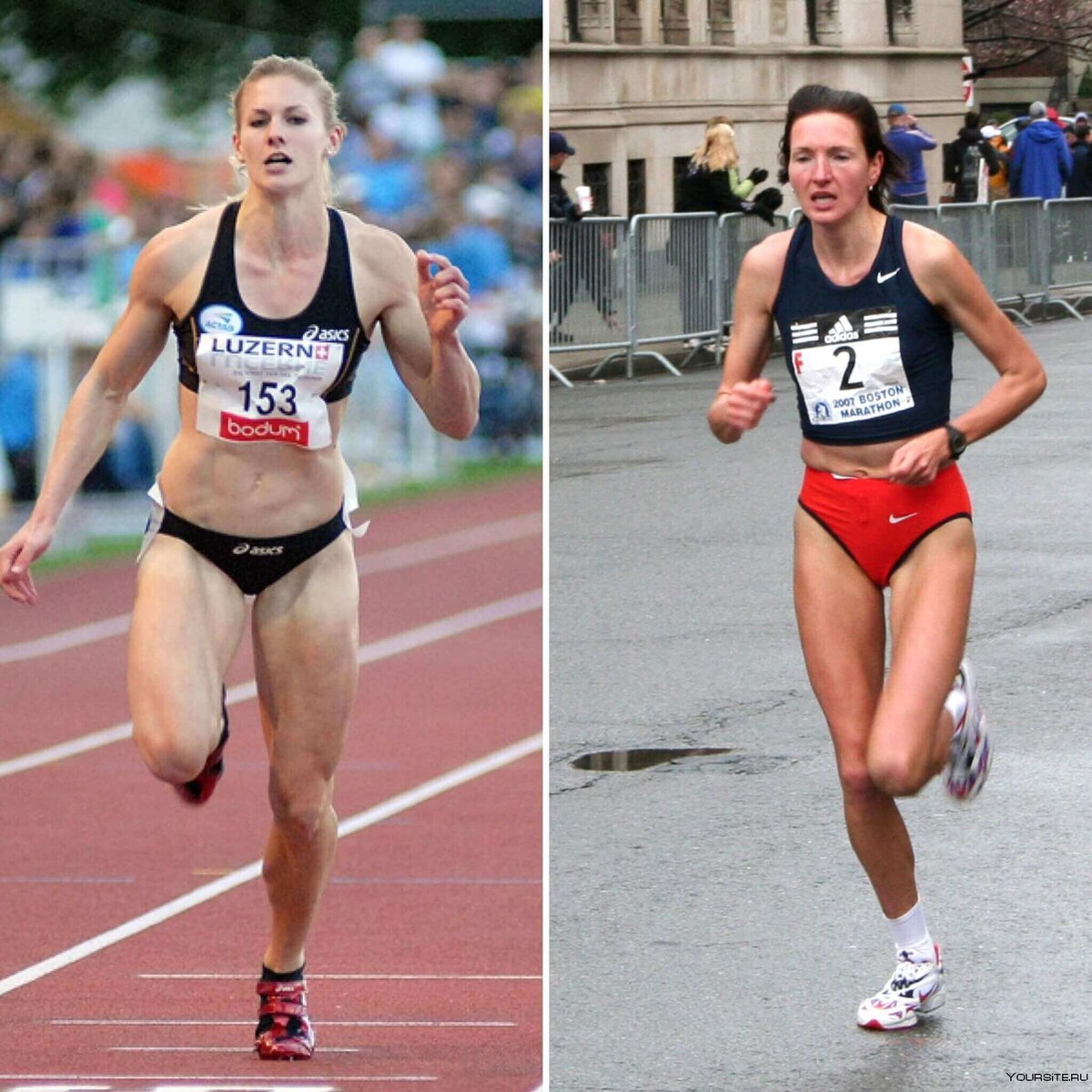 Кстати, на картинке реальные спортсменки. Они отличаются даже внешне! Казалось бы, обе бегуньи. Но одна специализируется на спринтах (блондинка), а вторая на марафонах. У них абсолютно разные формы тела. И это правильно! Так и у полных. Мы - марафонцы. Нам никогда не стать спринтерами, наши тела про другое. Так уж мы устроены. 😉
