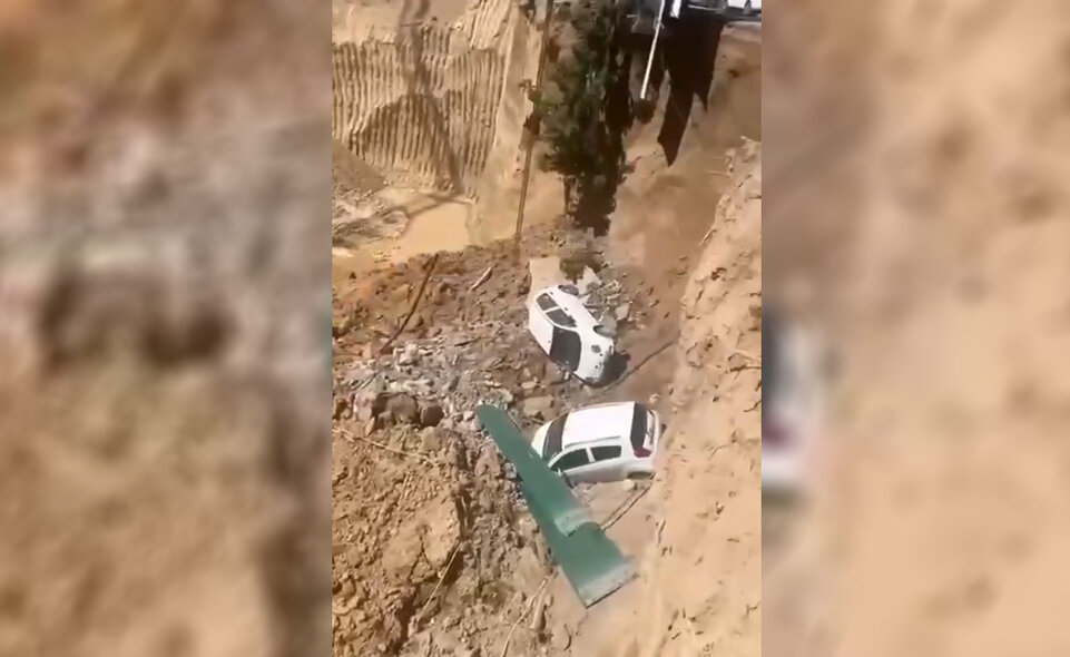 В Ташкенте возле стройплощадки одной из новостроек произошел обвал грунта. В яму упали два припаркованных авто. Видео