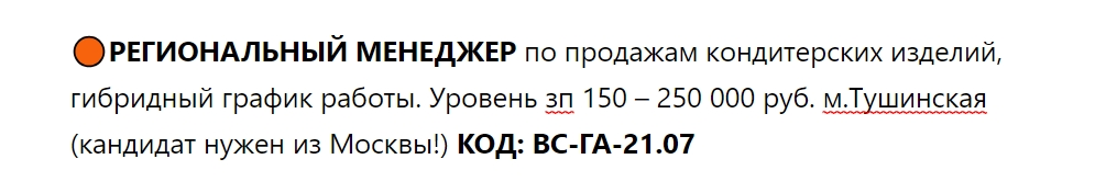 Откуда взяты вакансии? Получены от коллег-рекрутеров Как связаться, если вижу, что требованиям соответствую? Указать код вакансии в комментариях под материалом - я вас подхвачу и соединю с нужным рекрутером С какой периодичностью выходят такие подборки? По пятницам Как получать такие вакансии регулярно? Подписаться на канал 🟠 Бухгалтер по расчёту заработной платы, м. Китай-город Условия: на испытательный срок доход 85 000 нет, после прохождения 95 000 нет.
