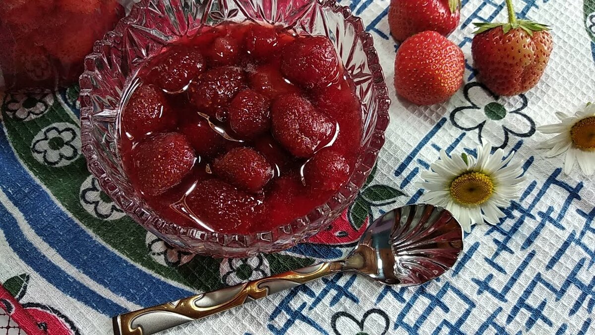 Клубничное варенье с бананом. Очень вкусное и ароматное сочетание!!! Напоминает вкус жвачки из детства.