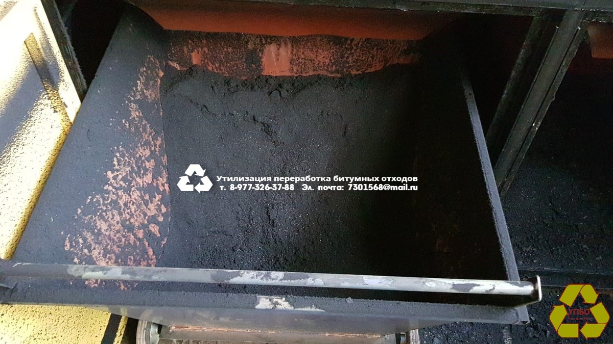 В результате механической переработки кровельных отходов получаются два продукта: битумный порошок, состоящий из битумной крошки и мелкого минерального наполнителя, и битуминизированный стекло/картон, представляющий собой пропитанную легкоплавкими битумами стекло/картонную основу материала, разорванную на куски размером до 40 мм.