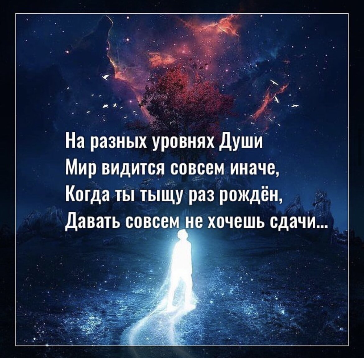 На разных уровнях Души Мир видится совсем иначе, Когда ты тыщу раз рождён, Давать совсем не хочешь сдачи, Ты хочешь свет распространять И здесь дышать одной любовью, А людям ссоры подавай И ведьм жги как в Средневековье, «Завидуй, злись и плачь без цели», Ну как понять они не могут, Что негатив хоронит мир, Стирая все дороги к Богу. А сколько Душ совсем не помнят, Что тело - временный лишь «дом», Они доказывают рьяно - Что тишина будет потом, Что нет совсем перерождения И кармы нет, и Душ родных, Про Род - пустая болтовня, Нет дьявола и нет Святых. Когда они уже проснутся… И стоит биться ли с такими… Не стоит, пусть растут тихонько, Мы тоже были «молодыми», Ошибки делали, боролись С людьми мудрее нас и выше, Но всё же добрались до света И Бога глас всё время слышим. Сейчас всё в мире поменялось, Пришли и Ангелы, и Боги, Чтобы помочь Земле проснуться, Избавить мир весь от тревоги. Нелегкая у них работа, Но по-другому жить нельзя, Все Небеса будут стараться, Чтоб «перешла» быстрей Земля