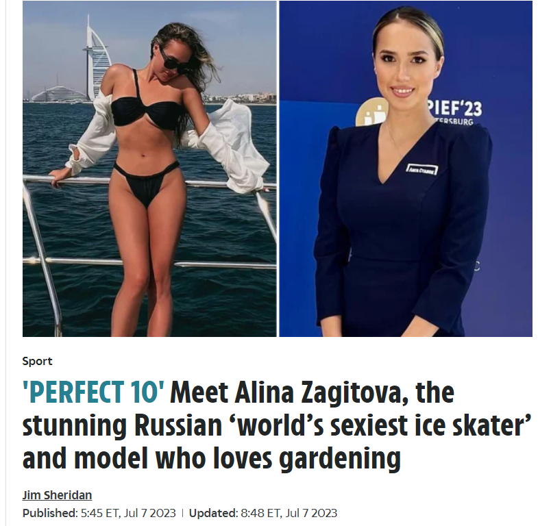 Здравствуйте, мои дорогие друзья! Вот уже больше трех лет как наша любимая олимпийская чемпионка Алина Загитова не выступает на соревнованиях. Но как я пересматривал, так и с удовольствием продолжаю пересматривать "Красную балерину" - мурашки до сих пор бегут по телу. Алина не выступает на соревнованиях с декабря 2019 года, но в ее жизни появилось множество других интересных дел. Она стала ведущей шоу "Ледниковый период", учится сразу в двух институтах, встречается с болельщиками и проявляется в других сферах - снимает репортажи, поет, боксирует, фехтует. Даже вне спорта о ней пишут журналисты, на этот раз об Алине написал британский таблоид The Sun. Предлагаю вам познакомиться с переводом этой статьи. Идеальная десятка: Познакомьтесь с Алиной Загитовой, потрясающей российской "самой сексуальной фигуристкой в мире" и моделью, которая любит садоводство