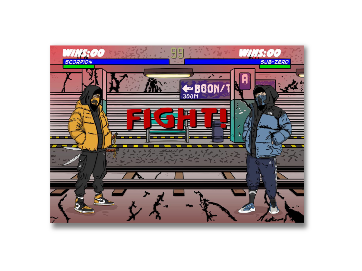 Персонажи будут выглядеть так, словно они вышли из модного журнала: Саб-Зиро и Скорпион одеты в кроссовки Jordan 1 HIGH и Adidas Yeezy 700, брюки карго и сверху куртки TNF и NOCTA. Персонажи не только отлично выглядят, но и выбранное для них место действия является данью уважения игре Mortal Kombat Ultimate, вышедшей на консоли Sega.