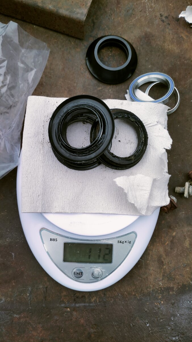 Добрый день. Пришли мои посылочки. 44 рулевая на промподшипниках и передние алюминиевые звёзды 50-34. В субботу с утра занялся заменой рулевой. Выбивал и отвёрткой молотком. Вышли чашки довольно легко. 112 гр весит моя стара рулевая. 84 гр. весит моя новая рулевая. Чашки я не запресовывал, а заколачивал деревянным бруском. Устанавливались новые чашки тоже легко. Собрал полность и у видел, что на новой рулевой дикие зазоры. Это очень сильно опечалило меня, но теперь руль крутится легко и не трещит)). Зазор снизу Зазор сверху. После установки рулевой я снял передние звёзды. Вес 178 гр. 50 алюминиевая с диким износом уже, а 34 стальная и без износа, но тяжёлая. Утром в понедельник сел на свой второй велосипед и поехал в город за звездами. По приезду обратно домой. Я сразу же приступил к установке звёзд. на 52 грамма легче старых звёзд. И вот финальный штрих и они установлены. За выходные сбросил 80 гр.))). Всем весёлых покатушек.