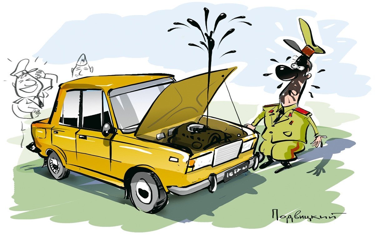 Дело это было давно, еще при социализме. Служил я тогда в одной воинской части начальником КТП (контрольно-технического пункта). Авторитет имел по части автомобильной техники непререкаемый. И были у нас в части, как мы тогда говорили, три дуба: начвещ, начпрод и начклуб. И если к первым двум эта поговорка относилась с некоторой натяжкой, то последний в технике был действительно дуб полный. Однажды приезжает он в часть на жигулях-пятерке. Купил по случаю у знакомых. Естественно, это было событие не только для него, но и для всей части. Как так, человек с техникой вообще не дружит и купил машину? И решил я приколоться. Расталкиваю толпу, обступившую автомобиль и его хозяина, подхожу к открытому капоту и спрашиваю: — Ты хоть масло в ней проверил?