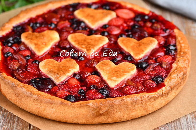 Сладкий открытый пирог из быстрого вкусного теста (начинка может быть любой)