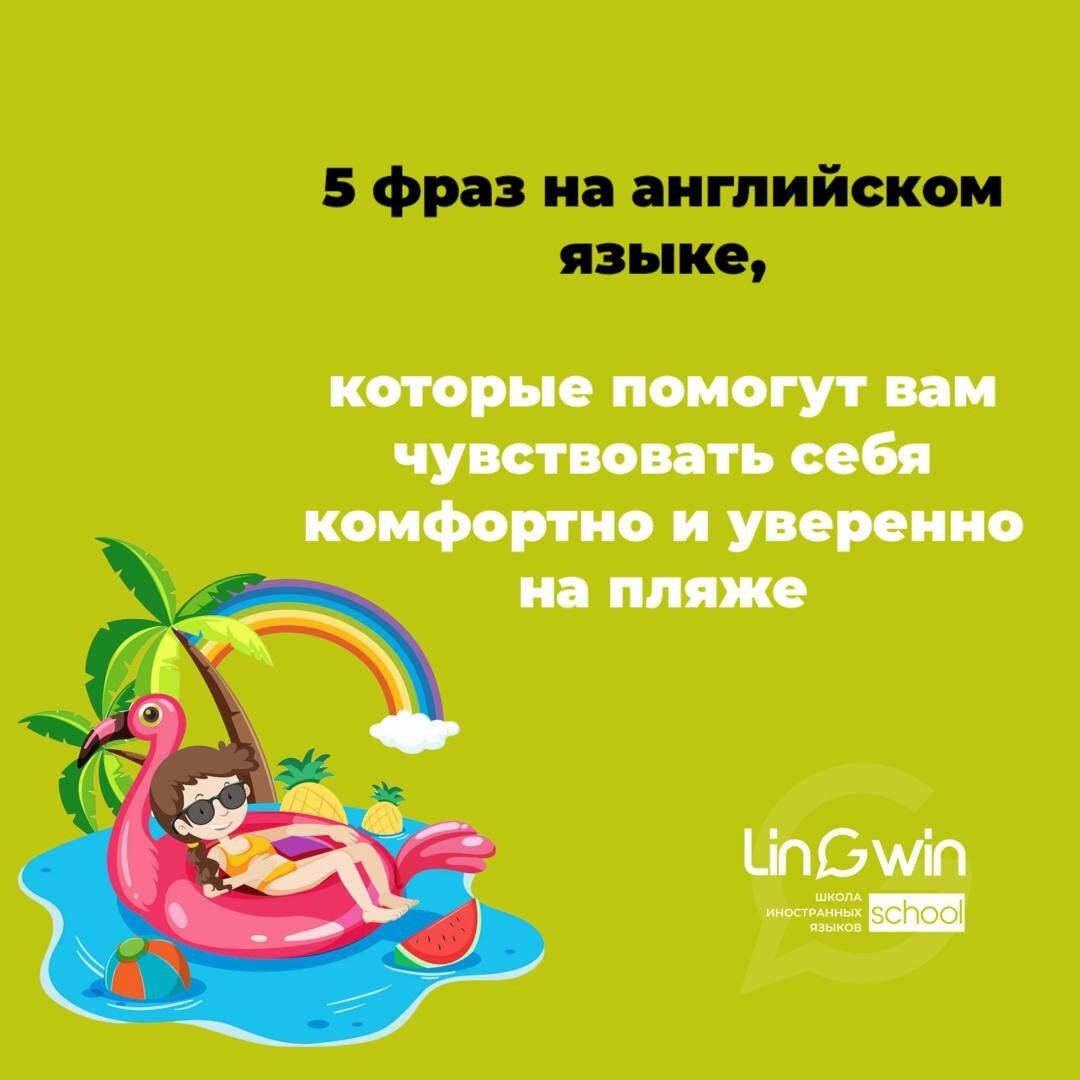 Не стесняйтесь использовать эти фразы и наслаждайтесь летним солнцем! А если вы хотите быть уверенными в себе не только на пляже, приходите в нашу школу иностранных языков ЛИНГВИН! Мы с радостью поможем вам освоить английский и другие языки, чтобы вы могли общаться легко и уверенно в любой ситуации.