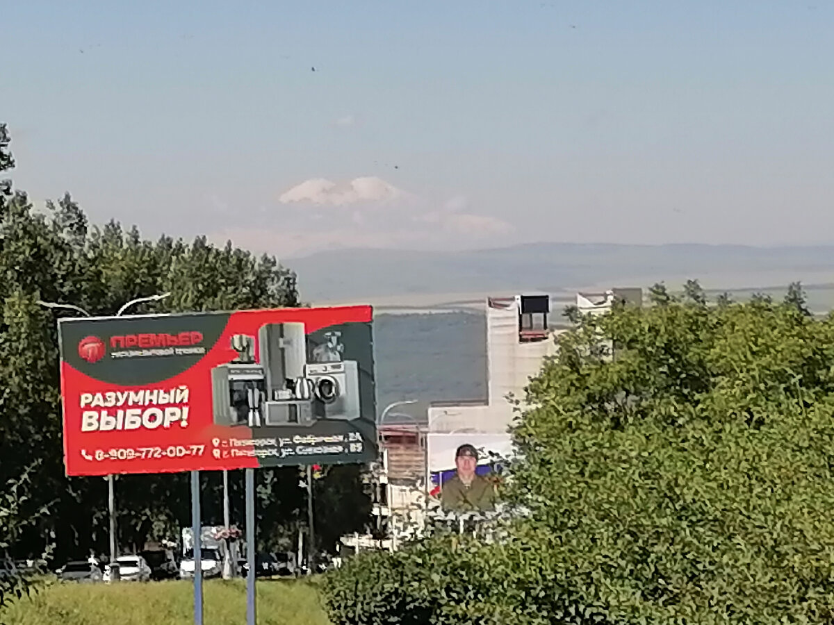 Эльбрус -самая высокая точка Европы. Первоначально я туда и не планировал подниматься. Нет я знал, что от Пятигорска до Эльбруса недалеко, но вообще планов там побывать не было. Не было, пока я после первой в этом городе ночи не спустился до остановки общественного транспорта и посмотрел вдоль дороги, а там стоял ОН. Это было завораживающее зрелище. Огромный и белоснежный с подножия до самых двух вершин. Смартфон не может передать величественности этого зрелища. Решено было посмотреть на Эльбрус с горы Машук на склоне которой и была расположена наша гостиница. Я дождался 3 часов ночи, это было несложно, так как по привычному для меня времени было час ночи и пошёл по замощённой дорожке мимо места дуэли Лермонтова до ворот Солнца Идти было недалеко, около 2 км и через полчаса я был на месте. Вон его вершина, чуть освещена солнцем, кое-как видна в отражённом свете, до восхода Солнца ещё час. Пока суть да дело начали подтягиваться другие люди, решившие встретить восход Солнца на склоне г