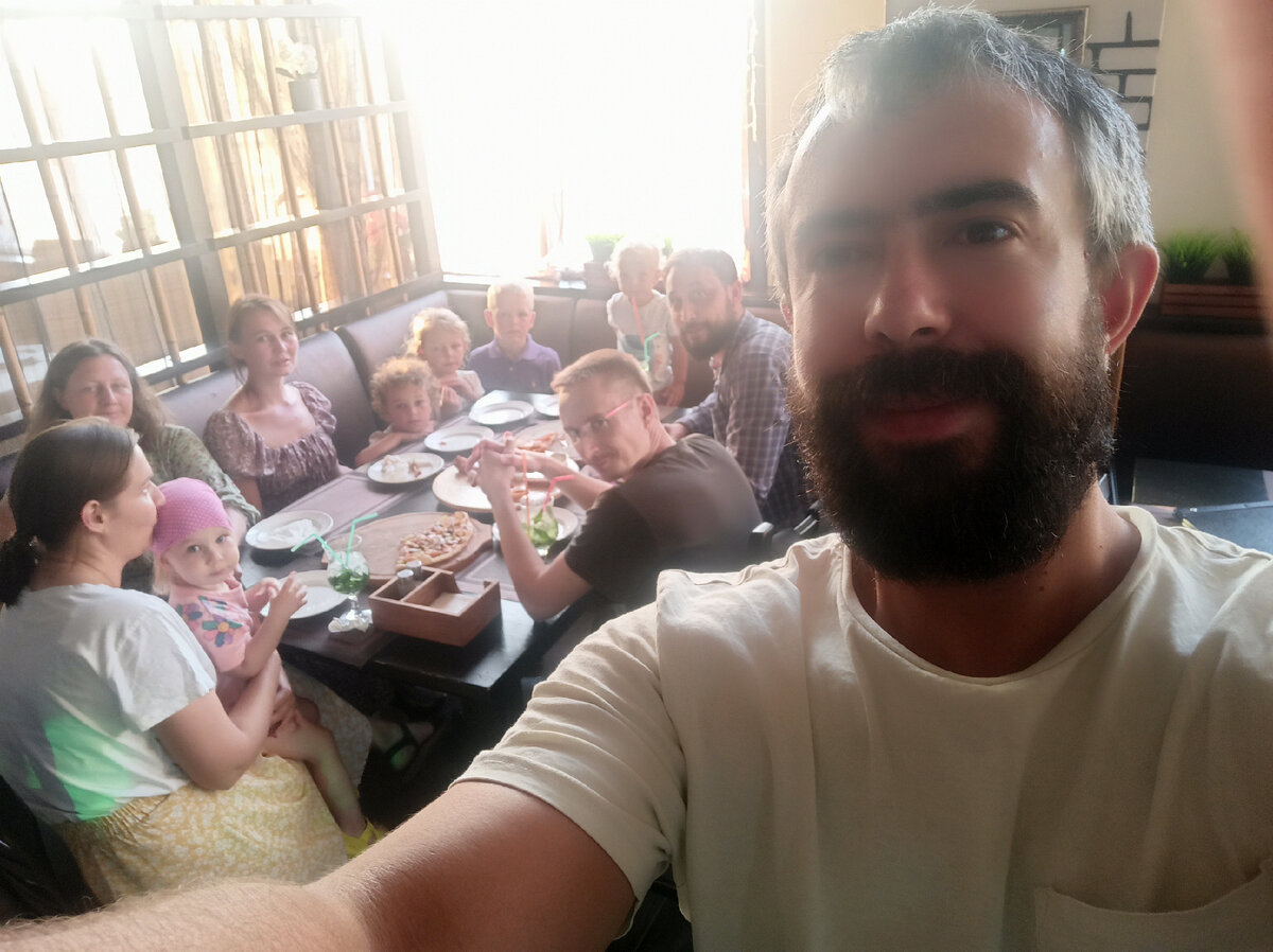 Закончилась наша прогулка в итоге большим застольем с друзьями.