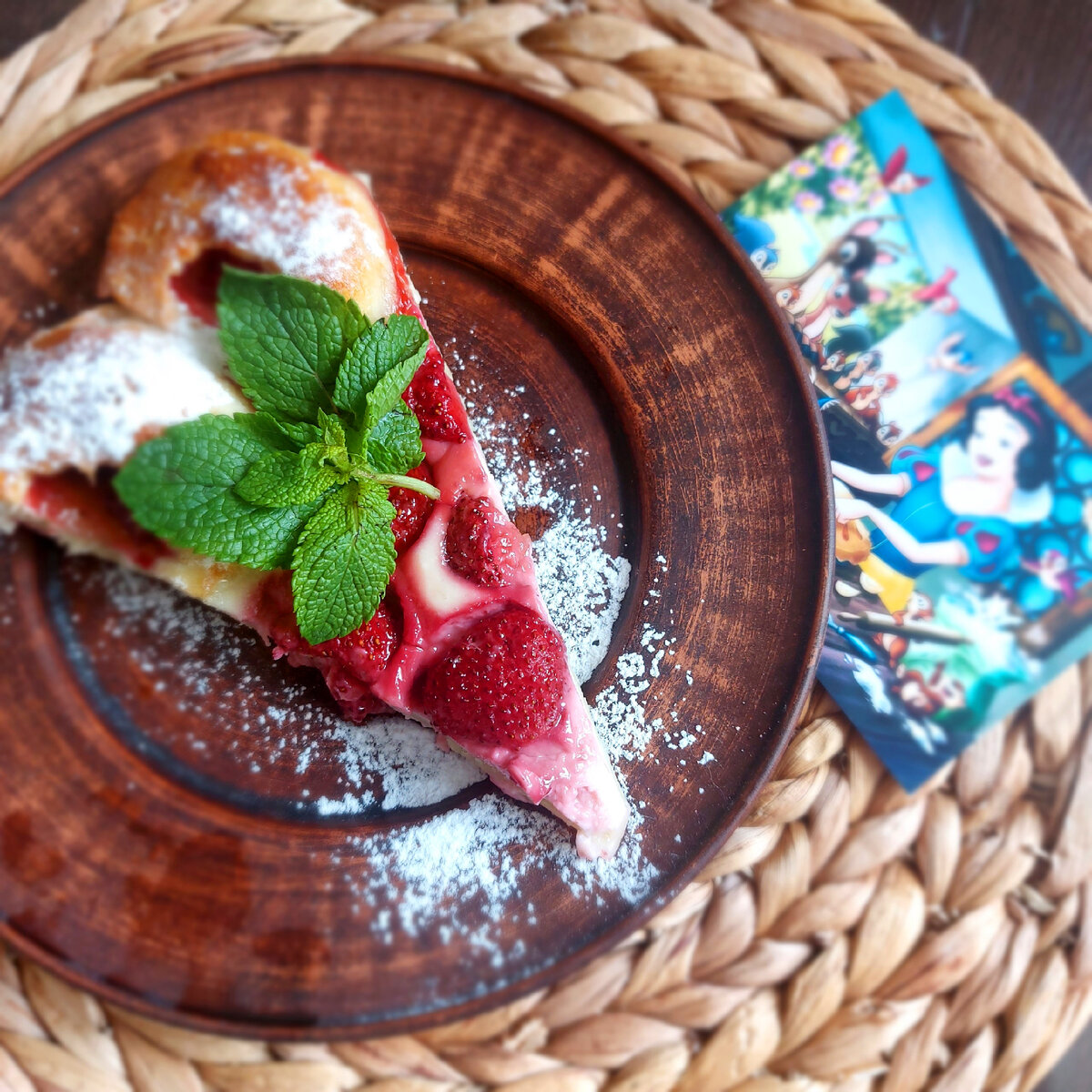 Всем доброго вечера. Возвращаюсь со своей позабытой рубрикой. Сегодня расскажу о семейном клубничном пироге, который сын с детства называет, как у Белоснежки, потому, что в детстве, после прочтения сказки он просил приготовить, как Белоснежка гномам, и мы пекли этот пирог. «Когда Белоснежка проводила гномов, Она вернулась в дом.