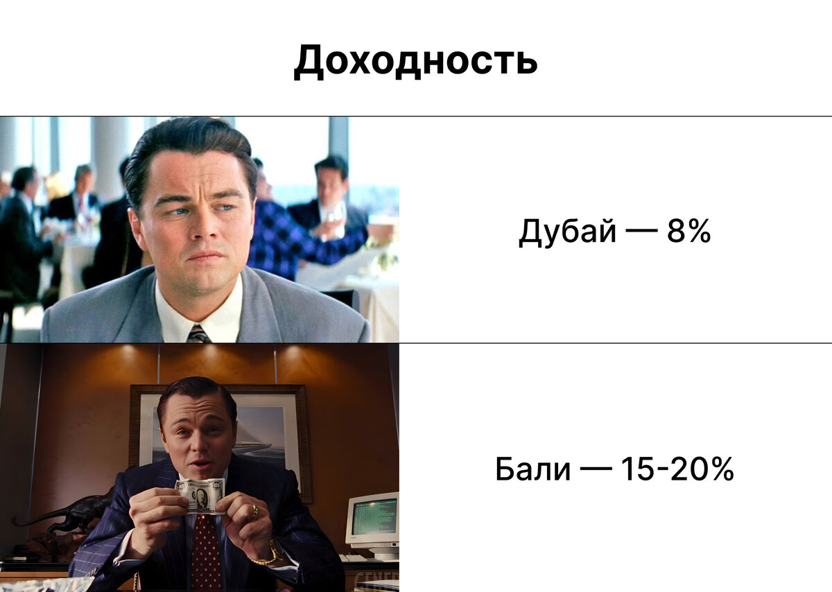 Подробнее об уровнях доходности. Согласно данным Forbes, средняя доходность недвижимости в Дубае – 5-7%, при сдаче жилья в краткосрочную аренду может доходить до 10%. Доходность на Бали – 15-20%, и она постоянно растет. Это происходит из-за более ранней фазы развития рынка и дефицита земли на острове.
