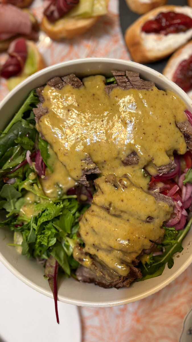 Салат с картофелем бэби, стейком из мраморной говядины с медово-горчичной заправкой 🤤