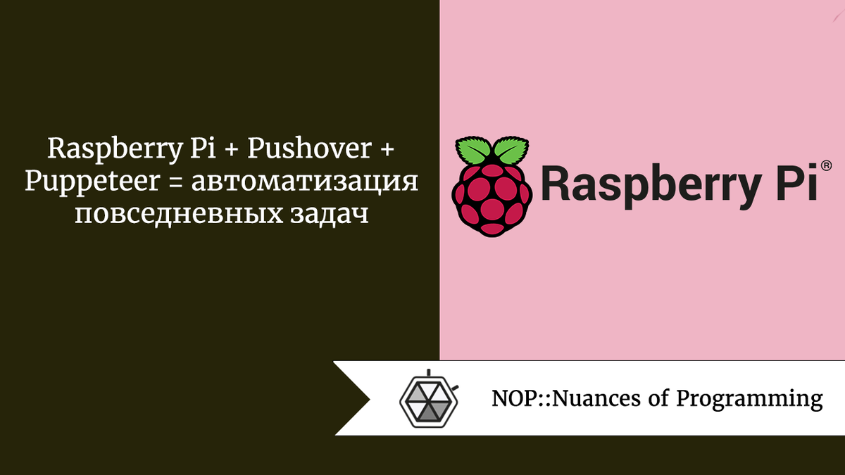 Главное внимание уделим общей настройке, процессу разработки и добавления задач, при этом не будем углубляться в специфику автоматизации каждой задачи. В основе настройки: Raspberry Pi для выполнения скриптов задач, Pushover для отправки нативных уведомлений на телефон и Puppeteer для взаимодействия с веб-сайтами и извлечения с них данных.