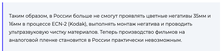 Предыстория такова. Весной 2023 года было официально объявлено, что с 1 марта 2023 года закрывается кинолаборатория "Мосфильма", где можно было обработать киноплёнку Кодак. В интернете стали появляться сообщения:
