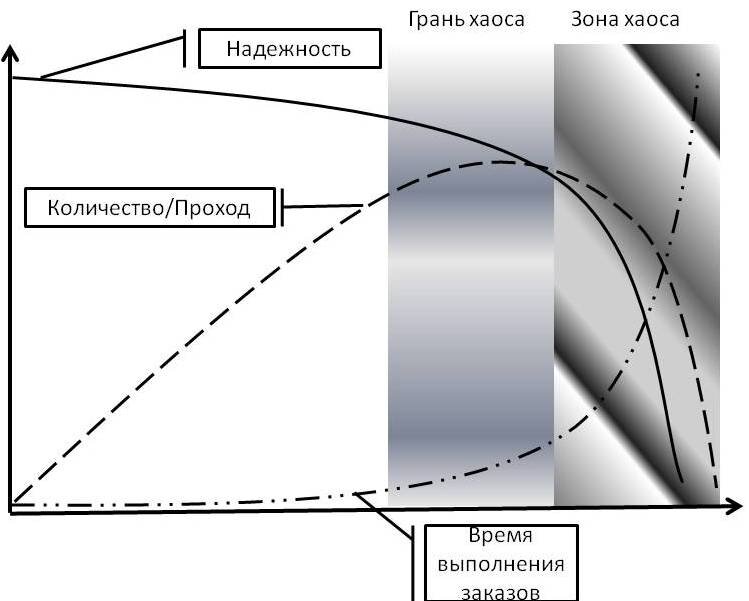 Мы уже не один раз говорили о том, что обеспечение высокого уровня наличия требует значительной защитной мощности. С практической точки зрения это означает, что мы не должны допускать возникновения активного внутреннего ограничения мощности. В своем вебинаре 2018 года, посвященном использованию динамического моделирования, доктор Алан Барнард показывал, как сокращение защитной мощности приводит к возникновению хаоса в детерминированной (то есть управляемой жесткими функциональными зависимостями, а не вероятностными связями) системе. В уже упоминавшейся книге «Управление цепями поставок с невероятной скоростью» Эли Шрагенхайм предлагает очень полезный механизм контроля за мощностью — метод Планируемой загрузки (Planned Load). Суть его состоит в том, что мы учитываем технологическое время, необходимое для производства всех заказов (в нашем случае — на пополнение склада) и сравниваем его со стандартным сроком производства (пополнения). Пока суммарное технологическое время по открытым зака