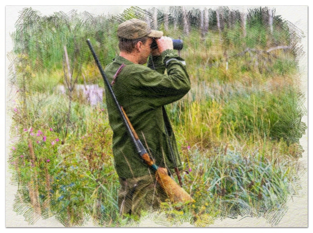 Совершая обход, Фёдор наткнулся на двух браконьеров. Лесник наставил на них ружьё и пригрозит: