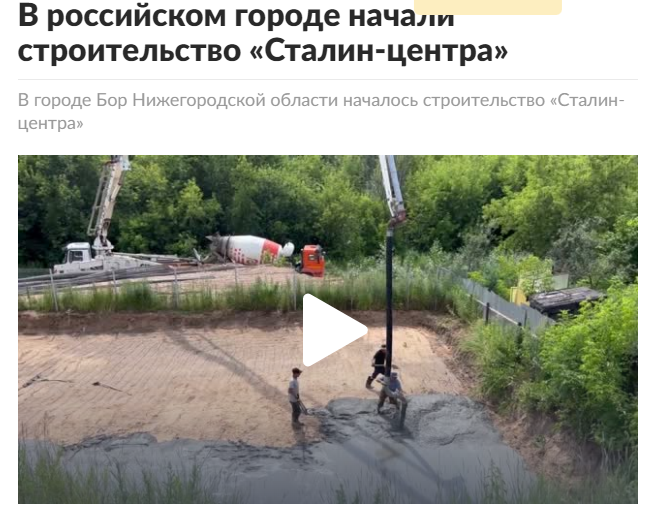 Совершенно случайно увидел в новостях запись от Ленты.ру о том, что в городе Бор Нижегородской области началось строительство музейного комплекса «Сталин-центр». Об этом сообщает городское отделение КПРФ на своей странице в соцсети «ВКонтакте». Денег на это будет потрачего от 20 до 120 миллионов рублей. Здание музея будет возведено на частной территории, принадлежащей местному бизнесмену. Идеологи проекта противопоставляют «Сталин-центр» «Ельцин-центру», связывая первый с созиданием, а второй — с прославлением уничтожения достижений СССР. Что это за идеологи проекта такие, лично мне не ясно. Мне очень нравится, когда классовый враг пролетариата на своей земле строит музей человеку, который вёл борьбу против таких людей. Вход в музей платным будет?