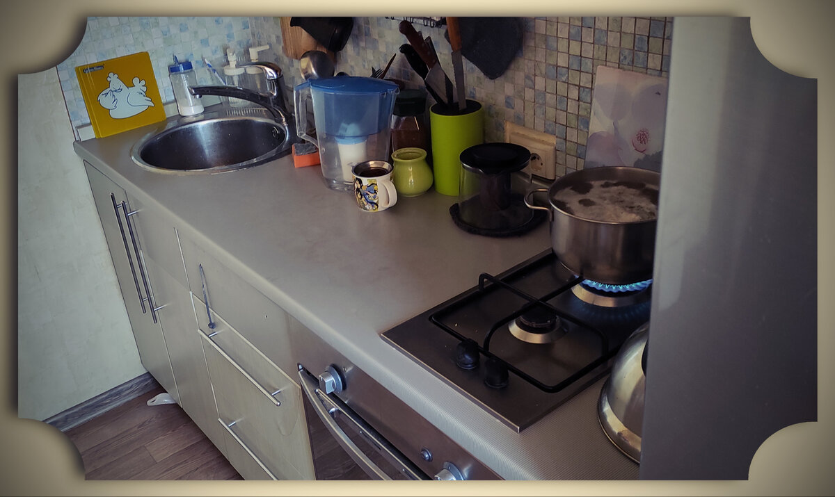 В моём случае кроме «ремонта» от застройщика по большому счёту с момента постройки дома (начало 90-х) в кухне не делалось практически ничего (переклейка обоев и замена линолеума не в счёт). Слово «ремонт» я не зря взял в кавычки: все стены были кривые и таким же были пол и потолок. Конечно все 17 лет проживания в данной квартире (с 2006 года) это напрягало - лично я поклонник правильных форм. Но свободных денег на ремонт сразу всей квартиры не было и поэтому всё делалось постепенно и поэтапно. И вот наконец очередь дошла и до кухни.