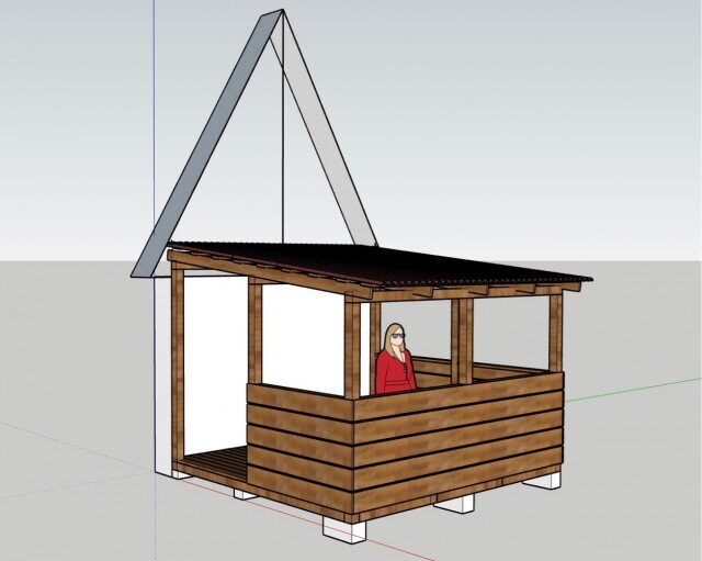 Выбирали между отдельностоящей беседкой или пристроенной к домику верандой. По ряду соображений решили, что будет второй вариант.